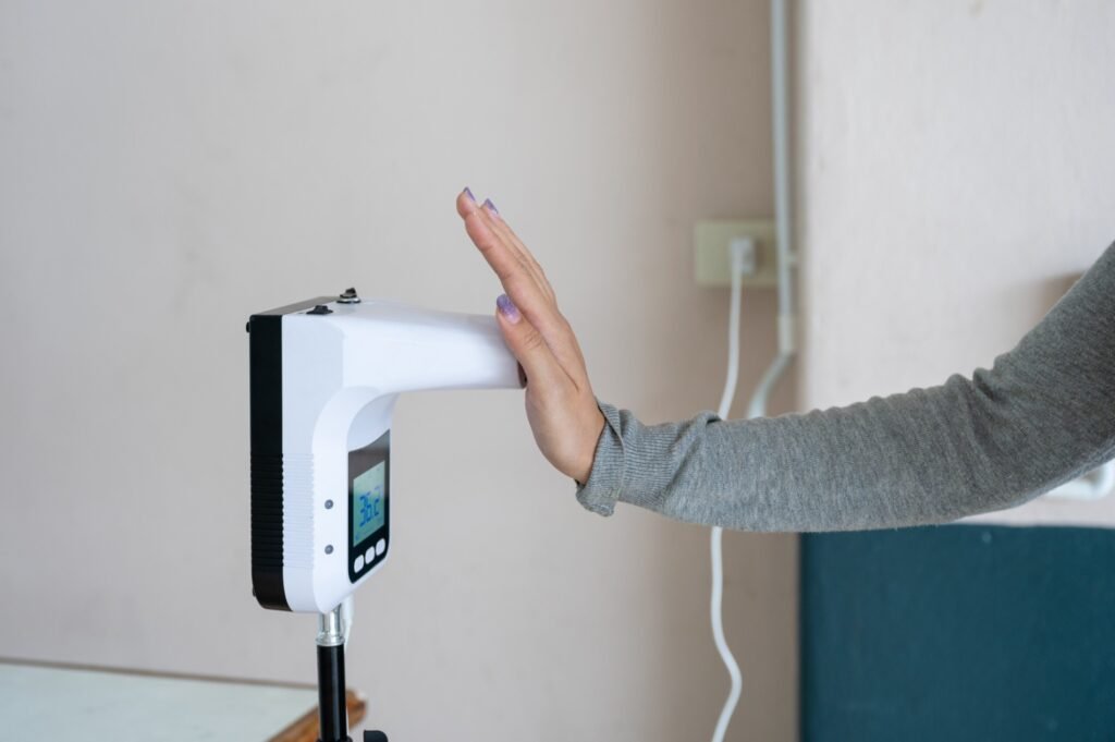 The Styku 3D body scanner is a medical-grade device that uses infrared depth sensors to build a precise three-dimensional model of your body. It measures body fat percentage, lean muscle mass, circumferences, posture, and body shape without radiation, physical contact, or discomfort. Results are generated in minutes.